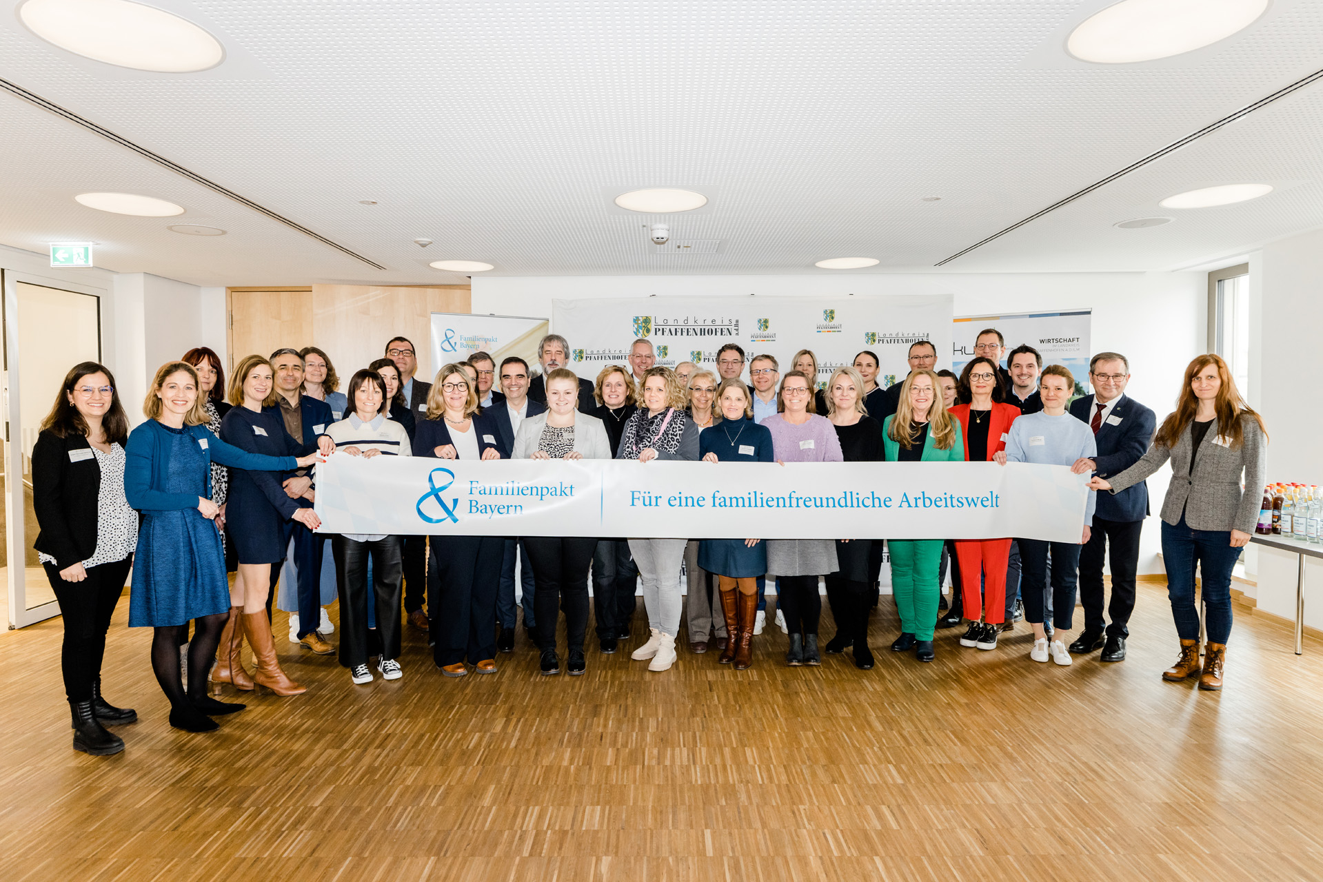 Am Mittwoch, den 08. März 2023 hat der Familienpakt Bayern zusammen mit dem KUS Pfaffenhofen im Landratsamt in Pfaffenhofen a.d. Ilm Familienfreundlichkeit in den Fokus gesetzt. Im großen Sitzungsaal wurden durch Christian Schoppik, dem Ministerialdirektor im Bayerischen Staatsministerium für Familie, Arbeit und Soziales und dem Landrat Albert Gürtner die 12 neuen Mitglieder feierlich empfangen.