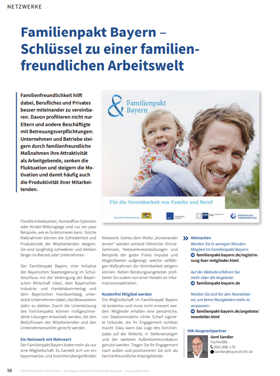 Am 12. Februar 2025 fand die virtuelle Jahresauftaktveranstaltung des Familienpakt Bayern statt. Im elften Jahr im Fokus: „Familienfreundlichkeit lohnt sich – Potenziale am Arbeitsmarkt nutzen“. Die Veranstaltung zog zahlreiche Mitglieder, Netzwerkpartner und Interessierte an.